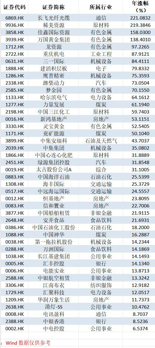 近期创新高的港股中,煤炭、石油板块具有重要占比。
