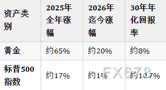 2026年迄今,金价表现持续大幅领先股市。以下表格基于最新数据呈现清晰对比:
