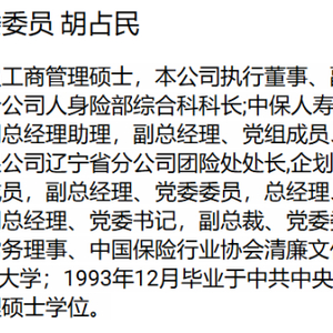 老将胡占民离任、财险背景张海军补位!人保寿险业绩高点后谋新局