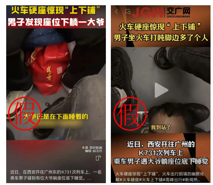 网传西安至广州东K731次列车硬座下躺人信息不实