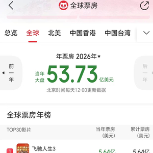 超越《阿凡达3》 ,《飞驰人生3》登顶2026年全球票房榜