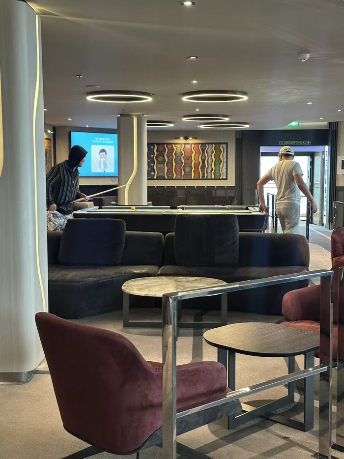 早会过后,客人们自由活动,而毛乾勋则继续“站岗”,从8点半到11点,他会在邮轮6楼的酒吧坐着,他与客人约定好,如果有问题可以到这个地方来找自己,并帮助客人解决问题。