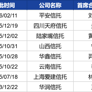 记者注意到,2025年10月以来进入首席合规官的密集获批期,云南信托、华鑫信托、山西信托、陆家嘴信托、天府信托等多家信托公司首席合规官的任职资格获监管核准。