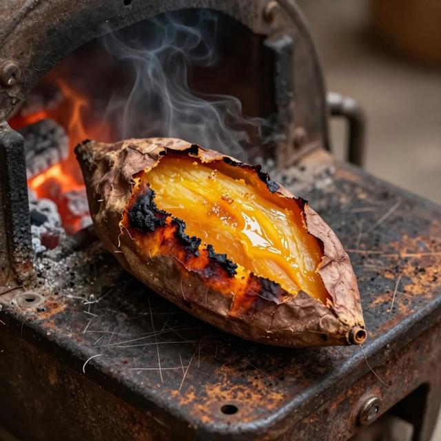 山芋又叫地瓜、番薯、红薯,近几年频现“蜜薯”“香薯”字样提高山芋的美誉度,它的图片、视频风卷神州,淌油、流蜜、焦壳酥肉的颜值引人入胜。恐糖者对甜字恨之入骨,我作为烘山芋的初代爱好者,随年长群体爱惜身体,收敛爱好,主动闭上引进的大门。巨鹿路作协门外,除了保安,一直有烘山芋人值守,让我走过路过忍不住斜瞄一眼,看炉头陈列的每一只烘山芋都巨大无比,心想这人选的品种真不怎么样,怪不得没人买。我真想吃了,得去找外皮红红身子细条,内芯橘红油润的蜜薯。