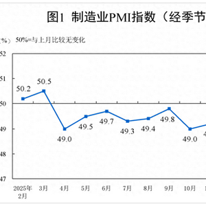 从分项指数看,五项指数全部位于收缩区间,变化趋势上“四降一升”。生产指数为49.6%,比上月下降1.0个百分点;新订单指数为48.6%,比上月下降0.6个百分点;原材料库存指数为47.5%,比上月上升0.1个百分点;从业人员指数为48.0%,比上月下降0.1个百分点;供应商配送时间指数为49.1%,比上月下降1.0个百分点。
