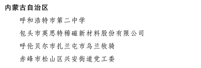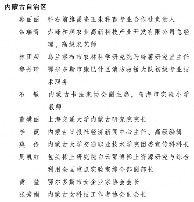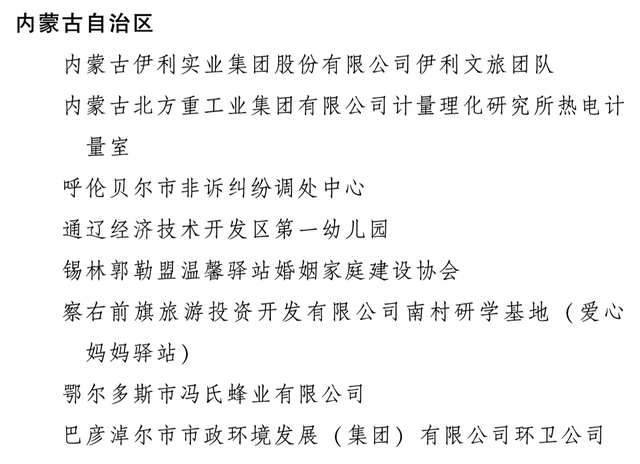 其中,内蒙古自治区郭丽丽等14名个人获评全国三八红旗手称号;呼和浩特市第二中学等10个集体获评全国三八红旗集体称号;内蒙古伊利实业集团股份有限公司伊利文旅团队等16个团队获评全国巾帼文明岗称号。