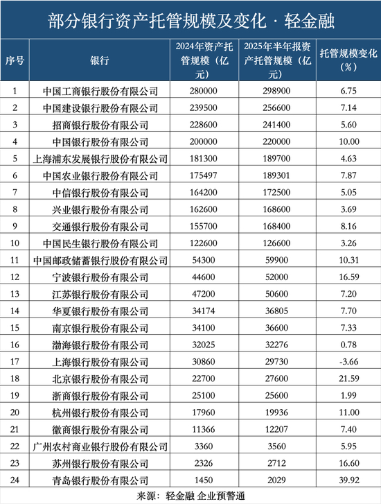 不过,托管行业竞争日趋激烈,头部集中化趋势明显。中国银行业协会发布的《中国资产托管行业发展报告(2025)》显示,截至2024年末,中国银行业资产管理类产品托管规模为182.20万亿元,较上年末增长12.64%。