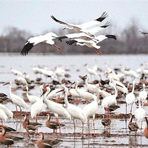 上千只白鹤齐聚江西省上饶市余干县白鹤洲栖息觅食。新华社发