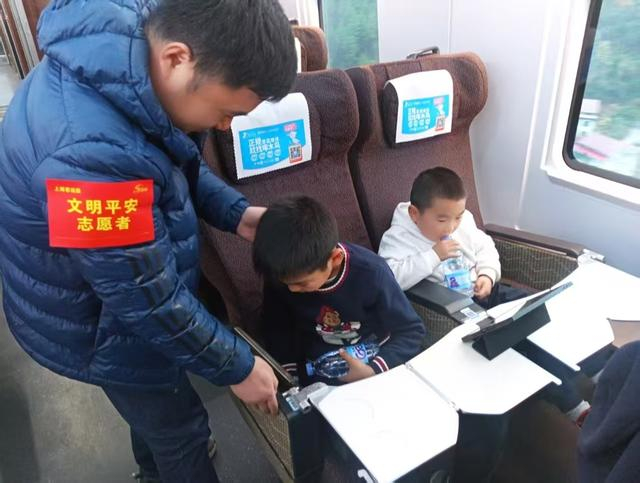 今年,依托“上海志愿者”微信公众号和列车广播社会化招募588名来自教师、高校学生、医护人员等有出行计划的志愿者,在上海至北京、昆明、西安、广州、重庆等热门线路的24趟列车上提供志愿服务。旅途中,志愿者协助乘务人员规整行李、消除安全隐患;发挥语言专长,为外籍旅客提供翻译与出行指引,搭建友好互动桥梁;同时与乘务员联合开展消防安全宣传,普及灭火器使用及乘车注意事项。值得一提的是,小小志愿者在乘务员指导下化身“文明宣传员”,以童真童趣倡导静音车厢公约,带动旅客共同营造安静有序的出行环境。