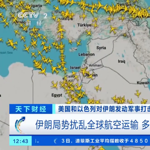 伊朗、伊拉克、科威特、以色列、巴林、阿联酋、卡塔尔,空域几乎清空