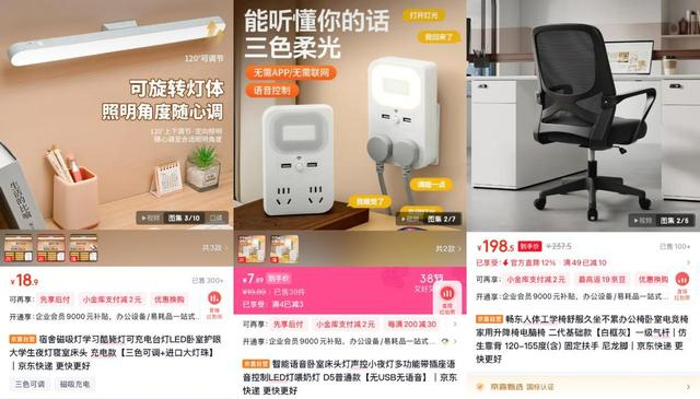 此外,宿舍磁吸灯、声控夜灯插座、壁挂镜、人体工学椅等产品也持续热销,这些产品助力学生群体打造更加温馨、整洁且健康的生活与学习空间。