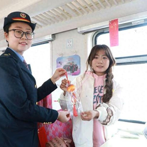 “坐着慢火车赶集带货,还能猜灯谜、领福包,这趟车真是越坐越暖心!”常年乘坐7503/4次列车的商户王师傅,手里攥着刚领到的福包,连连向乘务人员道谢。