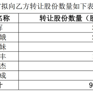 其中,黄晖转让360万股,占公司目前总股本的1.9325%;左笋娥转让241.42万股,占公司目前总股本的1.296%;左娟妹转让80万股,占公司目前总股本的0.4295%;左美丰转让130万股,占公司目前总股本的0.6979%;曹玲杰转让50万股,占公司目前总股本的0.2684%;黄修成转让70万股,占公司目前总股本的0.3758%。