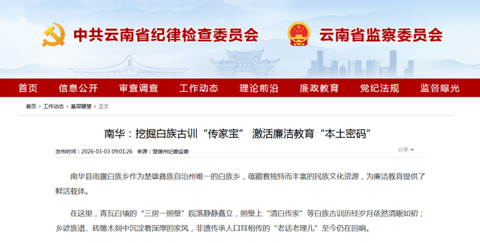 南华:挖掘白族古训“传家宝” 激活廉洁教育“本土密码”