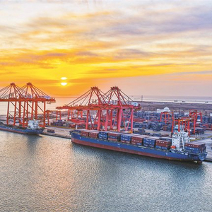 2026年1月19日,一艘货轮在拖船的协助下驶入河北省唐山港京唐港区集装箱码头(无人机照片)。新华社发(刘满仓 摄)