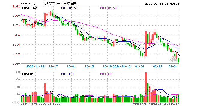 3月4日酒ETF(512690)份额减少1.08亿份,最新份额351.30亿份,最新规模176.35亿元