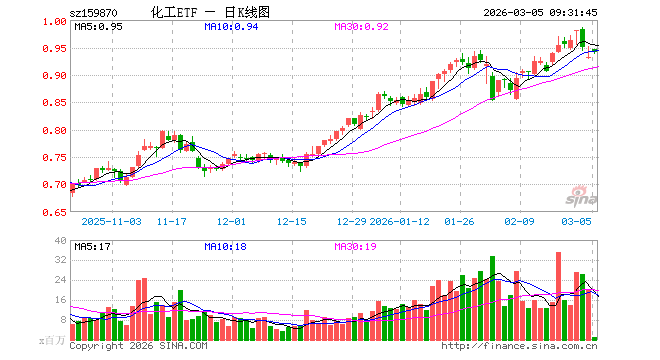 化工ETF(159870)业绩比较基准为中证细分化工产业主题指数收益率,管理人为鹏华基金管理有限公司,基金经理为闫冬,成立(2021-02-23)以来回报为-6.63%,近一个月回报为4.93%。