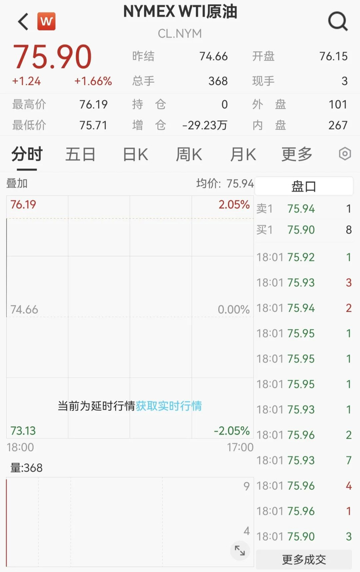 3月5日,美油期货主力合约高开,一度大涨2.05%。