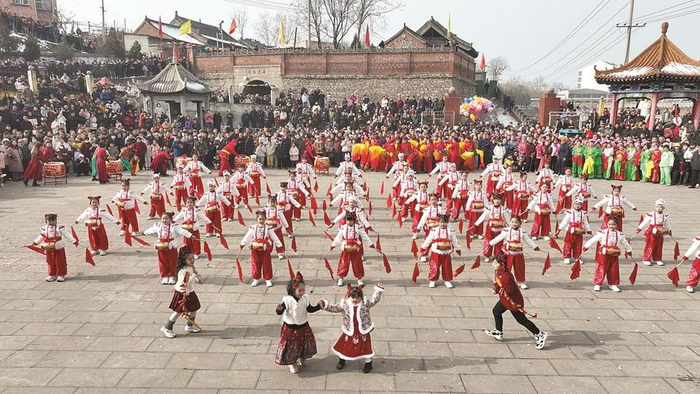 农历正月十五这天,位于太行山深处的涉县处处洋溢着节日的喜庆氛围,一场场精彩纷呈的民俗盛宴轮番上演。图为涉县井店镇井店村元宵节文艺汇演活动现场。