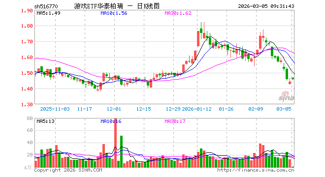 游戏ETF华泰柏瑞(516770)开盘涨1.66%,重仓股巨人网络涨0.39%,恺英网络涨1.34%