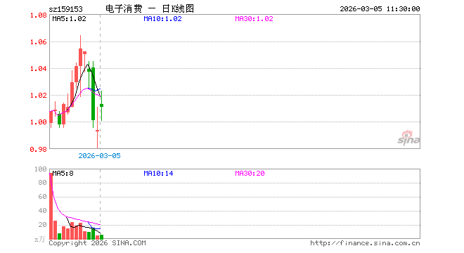 3月5日,截止午间收盘,消费电子ETF鹏华(159153)涨1.71%,报1.011元,成交额576.81万元。消费电子ETF鹏华(159153)重仓股方面,立讯精密截止午盘涨2.48%,兆易创新涨1.91%,胜宏科技涨1.77%,京东方A涨3.47%,东山精密跌1.23%,豪威集团涨1.33%,TCL科技涨5.06%,蓝思科技涨1.56%,长电科技涨2.42%,歌尔股份涨2.35%。
