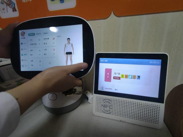 王宝昌的房间里,还有一台“健康小雅”机器人,可以实现主动健康风险预警、医务人员随访监测与指导、紧急救助服务等多项功能。另一款健康检测随诊箱,可以对人体进行多项生理指标的检测。