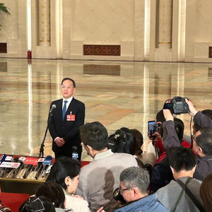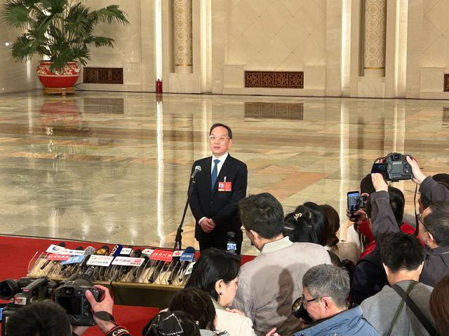 3月5日上午,在十四届全国人大四次会议首场“部长通道”上,工业和信息化部部长李乐成接受采访。中青报·中青网记者 贾骥业/摄