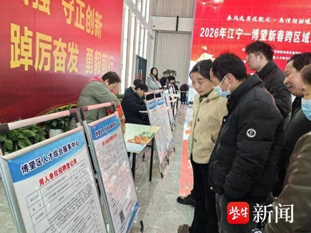 扬子晚报网3月5日讯(记者 姜婧仪 通讯员 江轩)近日,在宁马新型功能区发展服务中心内,人潮涌动、暖意融融,2026年南京江宁与马鞍山博望新春跨区域联合招聘会正在这里举行。13家来自江宁的用工大户企业,带着1000多个优质岗位,“组团”跨省招人,把就业的春风送到了博望百姓的家门口。