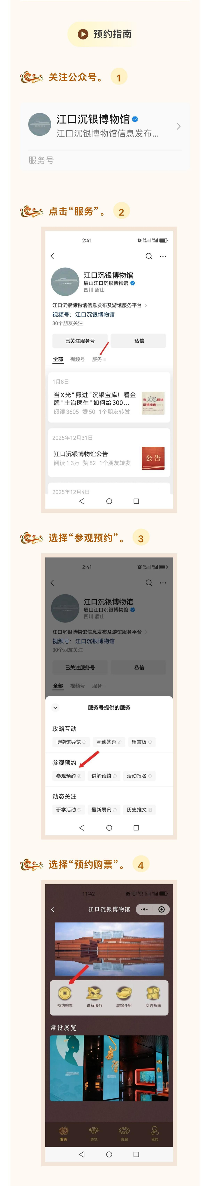 3月6日9:00起通过“江口沉银博物馆”微信公众号实名预约,日预约名额1000人,约满为止。请凭预约成功的二维码或本人身份证原件,在入口处核验入馆。