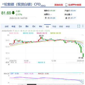 快讯:现货白银日内跌幅达2.00%,现报81.78美元/盎司