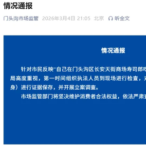 现在官方通报来了。针对市民反映“自己在门头沟区长安天街商场寿司郎吃出金枪鱼寄生虫卵”问题,北京市门头沟区市场监管局已第一时间介入: