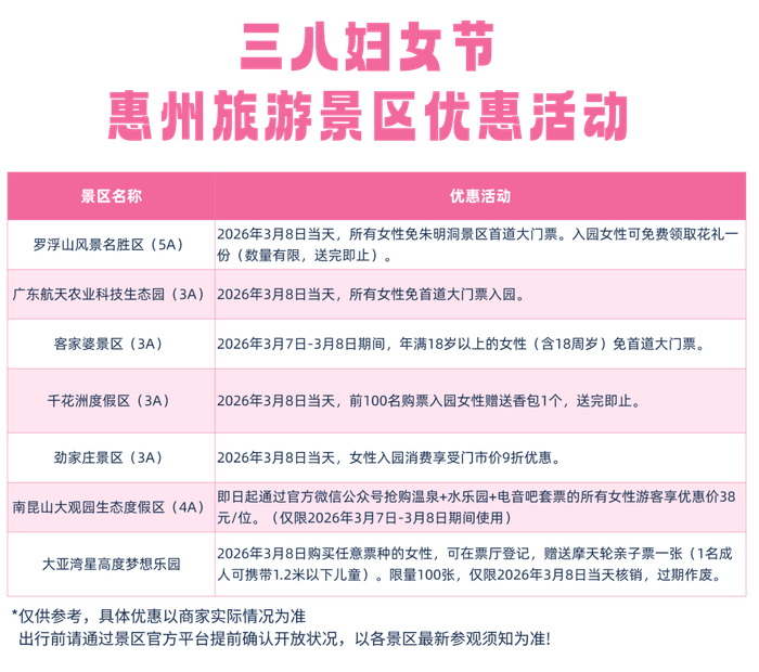 “三八”去哪玩?惠州景区来“宠”你!这波羊毛必须薅!