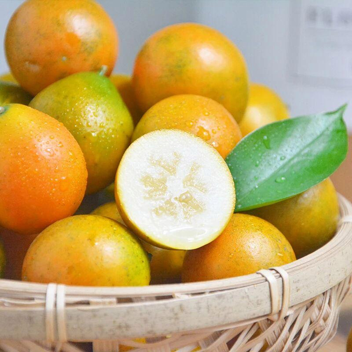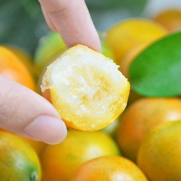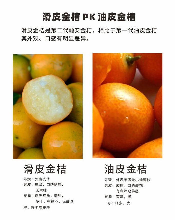 近年来成功培育的滑皮金桔,打破了金桔酸麻涩的印象,纯甜爆汁的金果果,一口就能甜蜜到心尖!