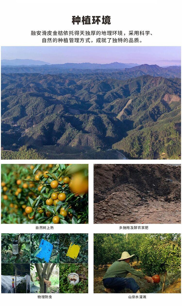 融安滑皮金桔种植历史悠久,自清朝乾隆已有250多年历史,因皮薄籽少、甚至无籽,糖心爆汁的高品质流传至今。