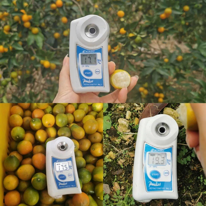 专业测糖仪检测,融安滑皮金桔的糖度几乎都在16°+,后期更是直飙20°+,可谓是甜出新高度!