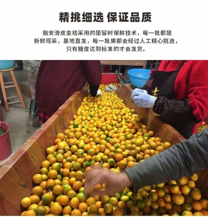 广西融安的是滑皮金桔,个头更大,皮薄又光滑。