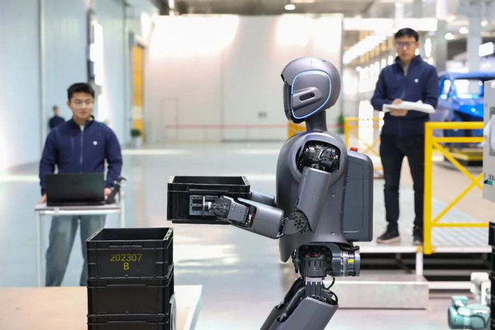 江苏无锡的一家民营企业工程师在调试人形机器人。新华社发 朱吉鹏摄