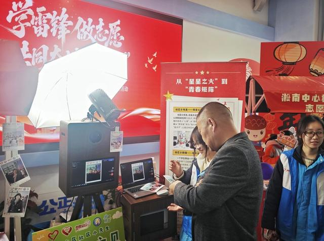 志愿者为市民免费拍照 摄影:陶磊