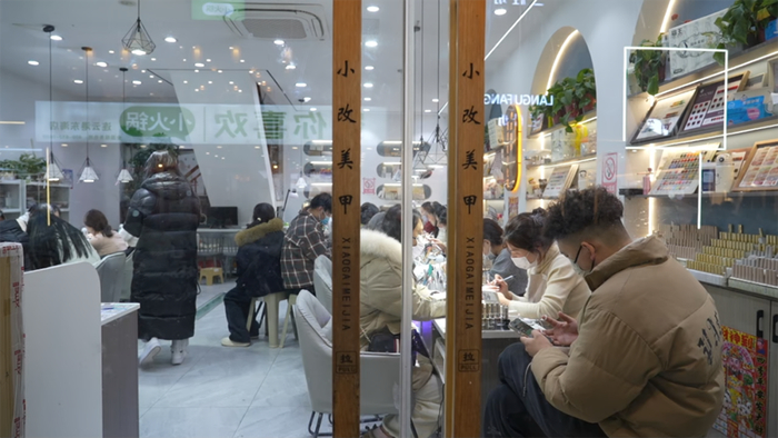 镜头转向凌晨3点的步行街深处,“小改美甲”店内依然座无虚席。店长许前方指了指墙上的挂钟说道:“你看,这会儿还有人在排队。”刚下直播的主播小张正沉浸在指尖的创作中:“别看我们作息颠倒,下播后来做个指甲,把事业和生活都抓在手里的感觉特踏实!”