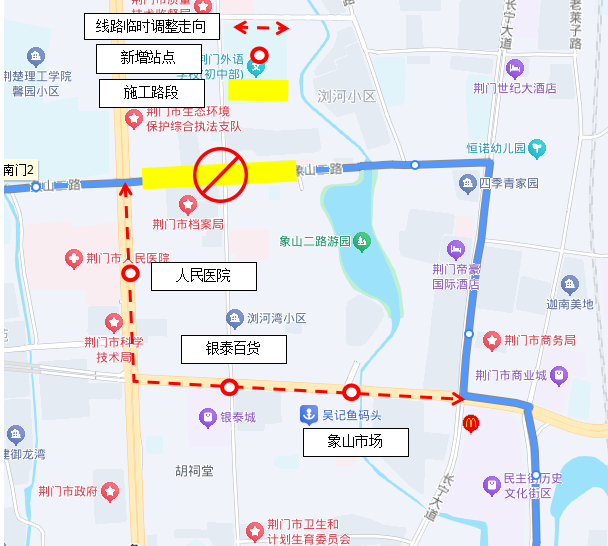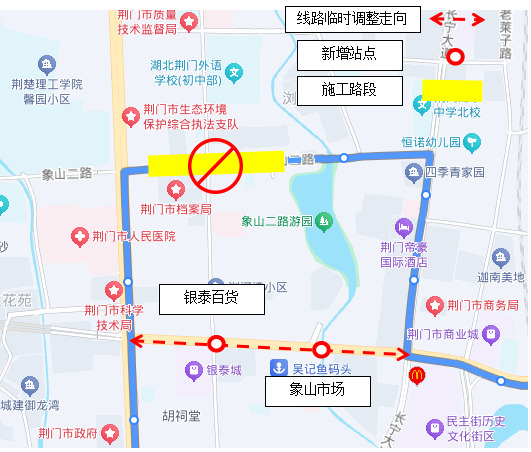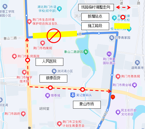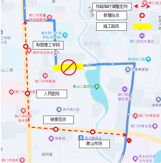 临时新增站点:象山市场、银泰百货、人民医院、荆楚理工学院