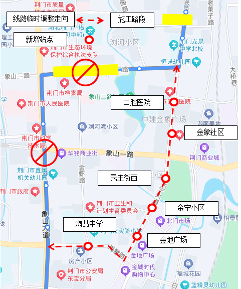 临时新增站点:口腔医院、金象社区、民主街西、金宁小区、金地广场、海慧中学