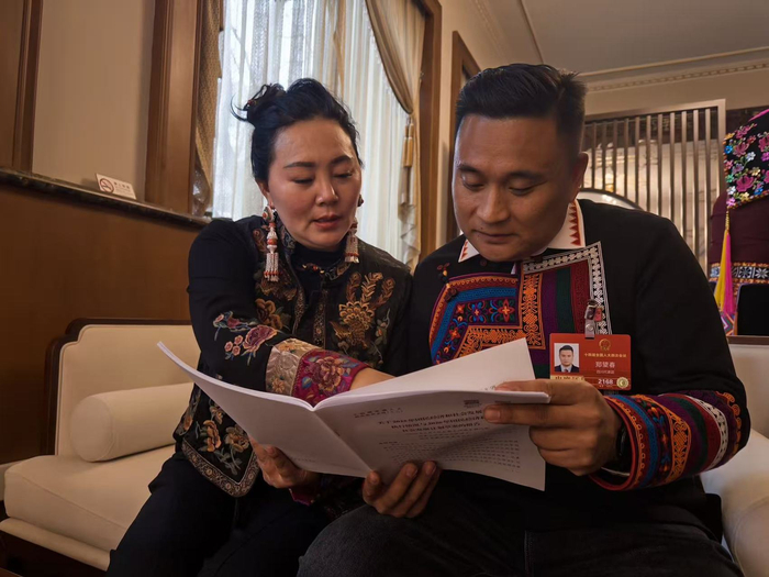 3月5日,四川代表团驻地,全国人大代表、雅安市汉源县永利彝族乡古路村党支部书记郑望春在政府工作报告“扎实推进乡村全面振兴”内容下作了着重标记。聊起这些年村子的发展,他兴奋地说起这个好消息。