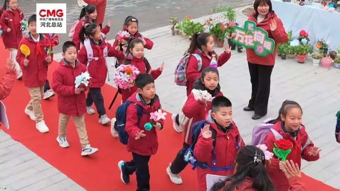 在雄安新区容东片区容和金源小学,记者看到这所小学举办了“花启新程 让春天发生”的春季开学迎新仪式,老师们用鲜花与微笑迎接同学们归来。