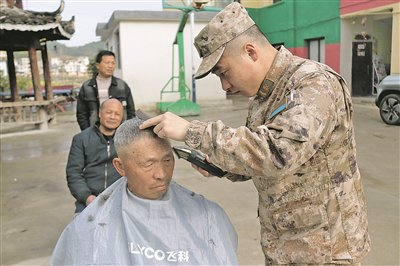 与此同时,另一路志愿服务力量在批林村同步展开暖心服务。驻军部队志愿者一进村便摆开阵势,为村民测量血压、义务理发,用专业和热情守护群众健康、传递便民温情;花溪区退役军人事务局的志愿者则为退役军人送去大米、洗衣液等生活物资,将关怀送到他们手中。一件件实事,一声声问候,让村民们真切感受到“雷锋就在身边”。