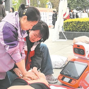 活动现场志愿者进行急救培训。