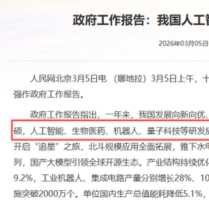 2026年政府工作报告指出,新质生产力稳步发展,科技创新成果丰硕,人工智能、生物医药、机器人、量子科技等研发应用走在世界前列,其中工业机器人产量同比增长28%。