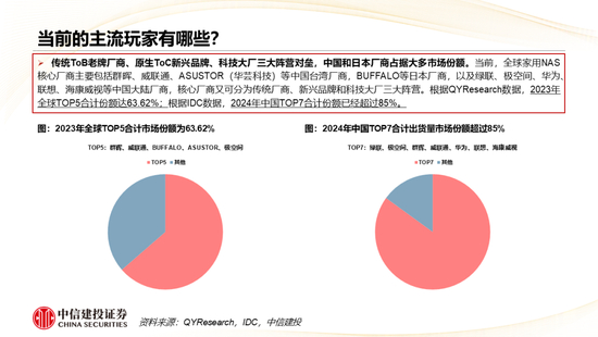 行业竞争壁垒与未来格局演变:未来AI NAS行业的竞争核心从传统的硬件参数、存储能力,转向AI能力、生态整合、供应链、品牌渠道四大维度的综合比拼,当前,行业存在传统ToB老牌厂商、原生ToC新兴品牌、科技大厂三大阵营。随着AI技术的全面渗透,NAS行业的竞争格局将进入加速重构期,呈现“短期份额重构、中期分层卡位、长期平台决胜”的三阶段演变趋势,未来行业将出现大规模并购整合,市场集中度大幅提升,TOP3厂商将占据70%以上的市场份额,最终市场将形成“寡头主导+垂直细分”的格局。