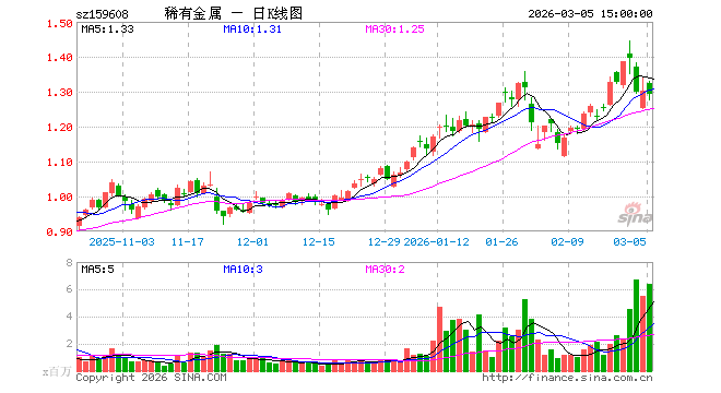 3月5日稀有金属ETF(159608)份额增加4.58亿份,最新份额53.20亿份,最新规模68.75亿元