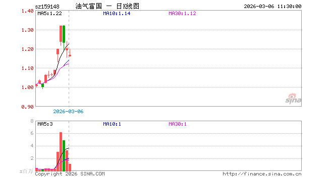 3月6日,截止午间收盘,石油ETF富国(159148)跌2.91%,报1.166元,成交额1.31亿元。石油ETF富国(159148)重仓股方面,中国石油截止午盘跌4.18%,中国海油跌3.87%,中国石化跌3.98%,杰瑞股份涨0.28%,广汇能源跌2.07%,招商轮船跌2.98%,中远海能跌2.68%,九丰能源跌3.18%,新奥股份跌2.36%,海油工程跌2.86%。