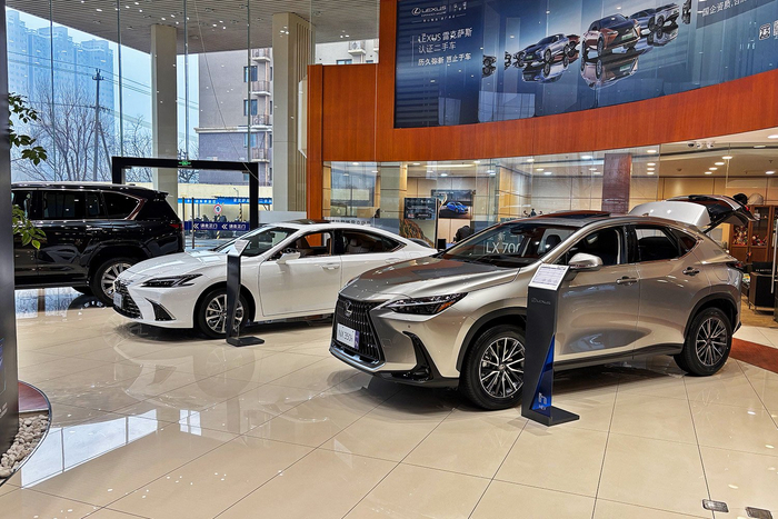 具体来看,各品牌的困境又各有差异。在雷克萨斯展厅,界面新闻注意到该品牌旗舰轿车LS已消失不见,销售人员证实这款车将不再在中国市场销售。目前展厅内仅剩ES、NX等主力车型。
